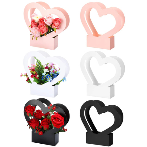 กําหนดเองหรูหราพับรักรูปหัวใจกล่องดอกไม้ช่อดอกไม้พร้อมที่จับสําหรับบรรจุภัณฑ์ดอกไม้