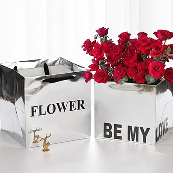 Mirror Silver Kraft Portable Wedding Rose Party Gift Flower Packaging with Handle